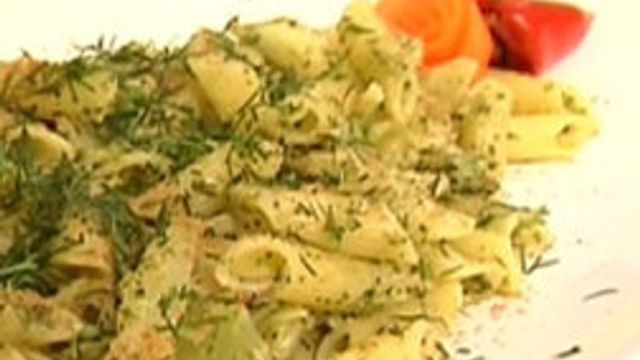 Si parte con uno sfizioso spiedino di polpette di nasello alla siciliana da abbinare con un'intrigante primo piatto di penne ai broccoli con bottarga di muggine