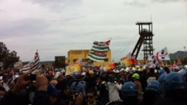 Proseguono gli scontri tra forze dell'ordine e manifestanti a Carbonia. La situazione all'esterno dell'area della miniera ricorda la guerriglia urbana: sull'asfalto sassi e pietre, resti di petardi e fumogeni. Visto che la strada di accesso è bloccata da una montagna di materiali, i ministri Passera e Barca, giunti in Sardegna per firmare il nuovo piano di sviluppo per il Sulcis, sono stati costretti a ripartire in elicottero per l'aeroporto di Cagliari.