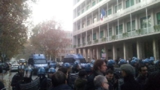 Alcuni manifestanti hanno insultato e aggredito un cameraman di La7 che stava filmando il corteo di protesta contro Mario Monti. Tre ragazzi hanno avvicinato, insultato e spintonato il cameraman. Nel tafferuglio gli occhiali da vista dell'operatore sono andati in frantumi e schegge di vetro lo hanno ferito vicino all'occhio sinistro e sulla guancia. A scatenare la violenza dei ragazzi è stata la presenza della telecamera, che è stata lievemente danneggiata.