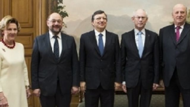 Il premio Nobel per la Pace 2012 assegnato all'Unione Europea è stato consegnato dal presidente del Comitato del Nobel, Thornbjoern Jagland, al presidente del Consiglio Europeo, Herman Van Rompuy, al presidente della commissione Europea, Jose Manuel Barroso, e al presidente del Parlamento Europeo, Martin Schulz. Presente anche il premier Mario Monti. Van Rompuy: "Omaggio a chi ha sognato la pace e l'ha resa realtà".