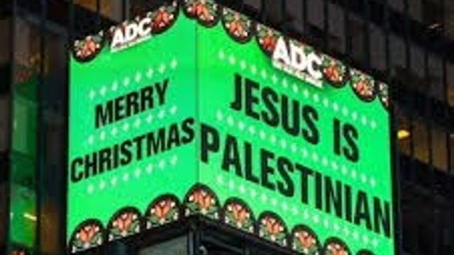 L'American-Arab Anti-Discrimination Committee (Adc) ha finanziato un'insegna luminosa affissa a Times Square, nel cuore di New York, con la scritta "Gesù è palestinese", in caratteri neri su uno sfondo verde brillante. Sull'altro lato è scritto "Buon Natale". La notizia è riportata dal New York Post, che riferisce di reazioni contrastanti (ma