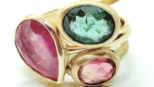 Le creazioni Belleke si articolano in anelli, orecchini, bracciali, spille e collane, lavorati interamente a mano in bronzo giallo, bronzo rosso e argento, con possibilità di realizzazione in oro su richiesta. La collezione trova la sua solidità nei pezzi scultorei costruiti su volumi compatti e profili non simmetrici, come il Bombato o l’Irregolare, e negli anelli con pietre — tormaline, rodoliti, zaffiri, rubini — in cui la gemma non decora ma struttura l’oggetto, determinando la forma grazie alle sue inclusioni e variazioni interne. Accanto a questi nuclei prende forma la capsule Rococò, un esercizio sulla continuità del metallo: curve che si avvolgono in un unico movimento, senza eccedenze formali. Il cuore più sperimentale del lavoro di Isabelle emerge però nelle linee Entropia ed Earth, dove il metallo si apre, si inclina, si flette attorno a tormaline rosa o verdi e a cabochon dalla presenza densa; in queste serie la pietra determina la postura dell’oggetto, la sua tensione e il suo ritmo.