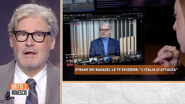 Nausica Samela di "Dritto e Rovescio" mostra l'edizione del tg delle 20:00 andato in onda qualche giorno fa sulle reti svizzere in cui si parla di "attacco alla Svizzera da parte dell'Italia". La conduttrice apre l'edizione dicendo nel sommario che "dopo la strage di Crans - Montana molti cittadini e giornalisti Italiani si sono scagliati contro la Svizzera con accuse di vario tipo".