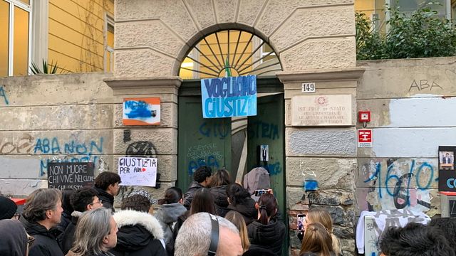 Gli studenti sono ancora troppo scossi, il dolore è ancora troppo grande. Quando questa mattina le porte della scuola si sono chiuse, all'esterno dell'istituto sono rimasti diversi giovani che hanno steso uno striscione per ricordare il loro compagno morto, poi si sono allontanati.