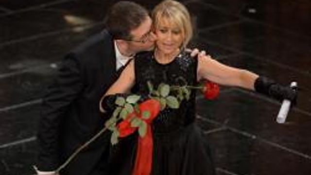 L'omaggio a Giuseppe Verdi con “Va Pensiero” per il bicentenario eseguita dall'orchestra di Sanremo e il coro ha aperto la kermesse targata Fabio Fazio e Luciana Littizzetto. Lucianina è entrata a teatro e poi sulle scale ha letto una letterina a San Remo con riferimenti leggeri su politica e costume culminate con la battuta “dopo la neve, le dimissioni del Papa e le elezioni manca solo la pioggia di rane ad Arma di Taggia”.