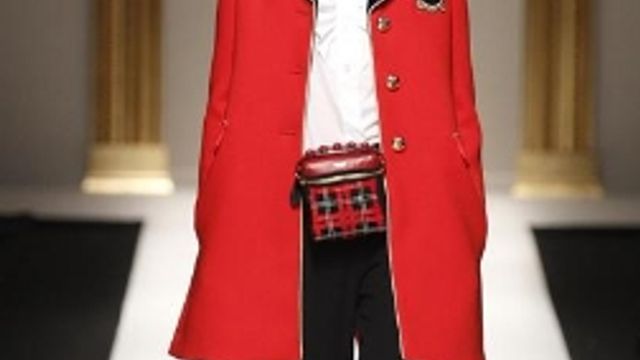 La sfilata di Moschino è una vera dichiarazione d'amore al mondo britannico. Rossella Jardini, direttore creativo della griffe, prende le mosse dal tartan e dai suoi colori, ma arriva poi fino a delineare una vera e propria "scottish-mania", denunciata nei tessuti, nelle mostrine ricamate d'oro, nei cappelli alla Scotland Yard, Non mancano le influenze dal guardaroba maschile, con rigorosi tailleur da uomo rivisti e corretti sulla silhouette femminile, camicie bianco candido dal taglio classico. Niente paura però: in collezione ci sono anche i classici completi in bianco e nero, colori cari alla griffe