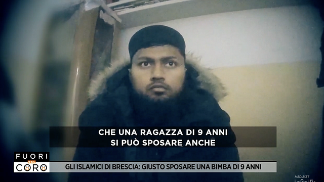 Secondo il Corano una bambina di nove anni può sposarsi? L'inviato di "Fuori dal Coro", Francesco Leone, ha chiesto spiegazioni all'imam di Brescia che a telecamere spente ha dichiarato: "Nel nostro Islam dopo i nove anni una bambina diventa adulta e quindi si può sposare, lo dice il Corano".