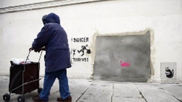 Lo stile è simile a quello di Banksy, ma non si sa chi sia l'autore.