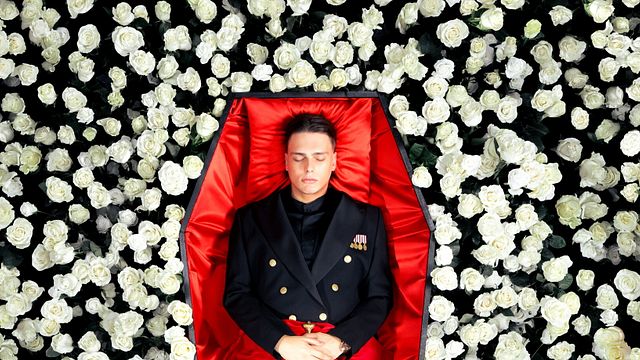 Una bara con rivestimento interno rosso riempita con rose bianche, una gigantografia della copertina del disco (l'immagine della sua finta sepoltura) e 16 corone funebri, ciascuna con il titolo di un brano del nuovo album. È l'ambientazione in cui il rapper Kid Yugi ha presentato alla stampa il suo "Anche gli eroi muoiono", che uscirà il 30 gennaio. "Ho deciso di far morire me stesso perché il tema centrale del disco è che nella società odierna l'eroe vero è l'uomo comune, è un modo per esorcizzare tutte le aspettative che io mi faccio e che gli altri si fanno su di me, muoio come tutti gli altri", dice l'artista, che ribalta e mina quindi la visione dell'eroe: "Nessuno può essere un idolo perché siamo tutti essere umani". Dunque, non ci sono più eroi? "È difficile stanare quelli del giorno d'oggi", aggiunge il rapper.
