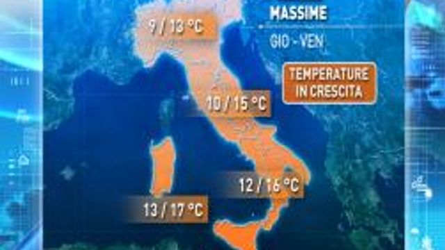 DOMANI - Giovedì cielo da poco nuvoloso a nuvoloso su Lazio, Abruzzo, Molise e regioni meridionali. Molte nubi sul resto d’Italia: qualche nevicata oltre 500-700 metri sulle Alpi piemontesi. Temperature massime stazionarie o in leggera crescita. Ventoso sulle Isole per venti di Scirocco.