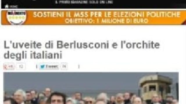 "L'uveite, una malattia che ha molto a che fare con la vendemmiata di processi dello psiconano - premette il leader "stellato" - è un'infiammazione di parte o di tutta la tunica media (vascolare) dell'occhio o che interessa le altre tuniche (sclera, cornea e retina). Rinchiuso in una suite di 200 metri quadri del San Raffaele, Berlusconi è curato giorno e notte amorevolmente, alla porta di uscita c'è un appuntato dei carabinieri per evitarne forse la fuga".