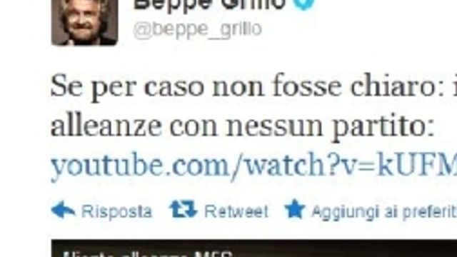 Ma Grillo smorza l'ottimismo: nessun accordo - ''Se per caso non fosse chiaro: il M5S non fa alleanze con nessun partito''. Così Beppe Grillo su Twitter dove posta il video-comunicato del gruppo M5S dopo l'incontro con la delegazione Pd al Senato sulle presidenze.