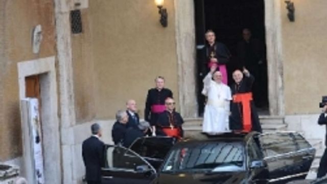 Il primo saluto a un gruppo di studenti - Quando papa Francesco è uscito dalla Basilica di Santa Maria Maggiore ha salutato con la mano alcuni studenti della scuola Albertelli, che si trova di fronte alla Basilica, affacciati alle finestre. I giovani lo chiamavano e agitavano le mani per attirare la sua attenzione, a quel punto il Pontefice ha risposto al saluto prima di infilarsi nell'auto e lasciare la basilica.