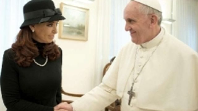 "Ho trovato il Papa sereno, sicuro e in pace, ma anche occupato e preoccupato per l'immenso compito della guida della Santa Sede e per cambiare le cose che lui sa che deve cambiare". Così la presidente argentina Cristina Kirchner ha commentato il suo incontro con il Santo Padre in Vaticano, aggiungendo di avergli chiesto di "intercedere con la Gran Bretagna per agevolare il dialogo sulle Falkland".