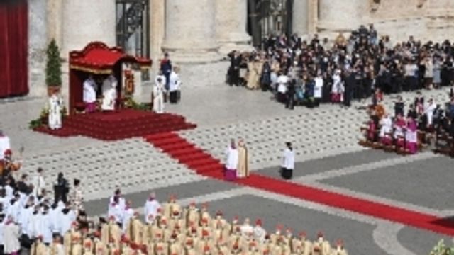 Il Papa emerito, Benedetto XVI, ha seguito in televisione la messa di inizio del pontificato di Papa Francesco. Ratzinger si trova nel palazzo di Castel Gandolfo, dove risiede dalla sera del 28 febbraio. In piazza San Pietro, intanto, decine di concelebranti, accompagnati da ombrelli bianchi e gialli, distribuiscono l'Eucarestia ai circa 200mila fedeli presenti all'interno del colonnato.