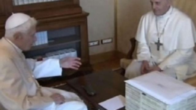 Il colloquio privato tra il Papa e il Papa emerito è durato "tra i 40 e i 45 minuti" ha spiegato padre Federico Lombardi, sottolineando che si è trattato del primo incontro di persona, ma che il Papa "ha già rivolto molte volte il suo pensiero al Papa emerito".