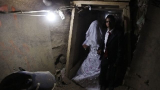 Manal Abu Shanar, a cui il governo Egiziano ha negato il permesso di raggiungere Gaza, ha quindi deciso di indossare l'abito bianco e imboccare una delle tante galleria clandestine che valicano il confine. Ad aspettarla c'era Emad El Malalha, il suo sposo. Hanno percorso quasi mezzo miglio mano nella mano, dentro il claustrofobico "tunnel dell'amore", dove di norma transitano armi e ogni sorta d'oggetto di contrabbando.