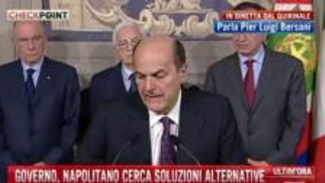 Nulla di fatto per la formazione del nuovo governo. Pier Luigi Bersani è andato da Giorgio Napolitano. Gli "ho riferito che le consultazioni non hanno portato a un esito risolutivo", ha detto il segretario del Pd. Intanto il presidente della Repubblica si è riservato di "prendere senza indugio iniziative che gli consentano di accertare personalmente gli sviluppi possibili", ha reso noto il segretario generale del Quirinale, Donato Marra.