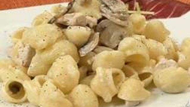 Ingredienti per 4 persone: 320 gr di mezze penne rigate o conchiglie, 2 fette di tacchino (300 gr circa), 6 funghi champignon freschi, 3 cucchiai di panna da cucina (o panna vegetale ), ½ bicchiere di cognac, 1 cucchiaio di cipolla tritata, sale, pepe, brodo vegetale, olio extra vergine di oliva.
