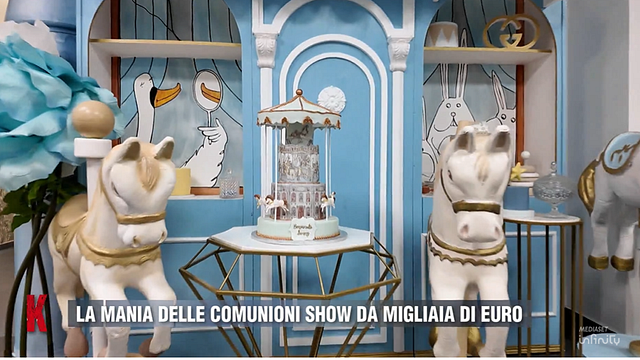 Anche le bomboniere tradizionali vengono sostituite: "Una volta, al loro posto, abbiamo realizzato tatuaggi - continua la titolare al programma di Rete 4 -. Un ricordo indelebile, tutti si sono fatti tatuare". Non solo comunioni, anche gender reveal: "Un video di un evento è diventato virale sui social e poi ho ricevuto anche delle chiamate dagli Stati Uniti". Tornando invece a parlare di comunioni, il programma condotto da Tommaso Labate ha fatto visita a un atelier di abiti da sposa che, ovviamente, si dedica anche a realizzare capi per le bambine: "I nostri abiti sono realizzati da sarti professionisti - spiega Giovanna Marinacci, Fashion Stylist -. Qui si arriva a pagare anche 5mila euro per un abito". E poi si passa alla parte scenografica: dalle sculture, ai cantanti, fino a palchi, palloncini e chi più ne più ne metta. Tutti però concordano su una cosa: senza social, queste comunioni costerebbero molto meno.