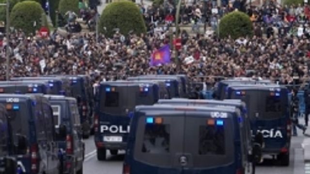 Nel centro di Madrid le forze dell'ordine, che hanno blindato i dintorni del Parlamento, si sono scontrate con la folla della manifestazione radicale "Occupiamo il Congresso", organizzata dalla piattaforma "En Pie!" (in piedi). Secondo El Pais online, i manifestanti hanno lanciato oggetti contro la polizia, che ha caricato a più riprese e usato manganelli. Un uomo di 50 anni è stato arrestato. Poi la gente ha iniziato a lasciare la zona.