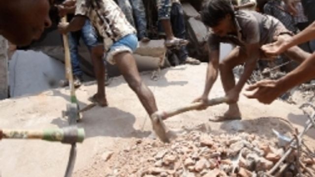 Il "Daily Star" riferisce che i soccorritori continuano a sentire voci che chiedono aiuto dal terzo piano dell'edificio. Per raggiungere le persone intrappolate sono state chiamate persone di corporatura minuta in grado di infilarsi tra le fessure dello stabile crollato. Intanto viene "pompato" dell'ossigeno sotto i detriti per garantire aria sufficiente a coloro che sono bloccati. Nella speranza di salvare altri superstiti, il responsabile dell'esercito (che guida i soccorsi) ha deciso di rinviare l'uso dei bulldozer. L'utilizzo dei macchinari per rimuovere le macerie era, infatti, previsto quest mattina, allo scadere delle 72 ore.