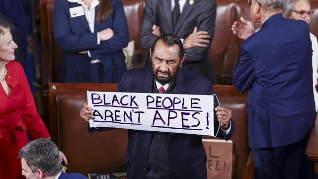 Il deputato del Texas Al Green è stato allontanato dalla Camera dei Rappresentanti durante il discorso di Trump per il secondo anno consecutivo. Green aveva esposto un cartello con la scritta: "I neri non sono scimmie", riferendosi a un video pubblicato su Truth dal presidente che ritraeva Barack e Michelle Obama come primati.