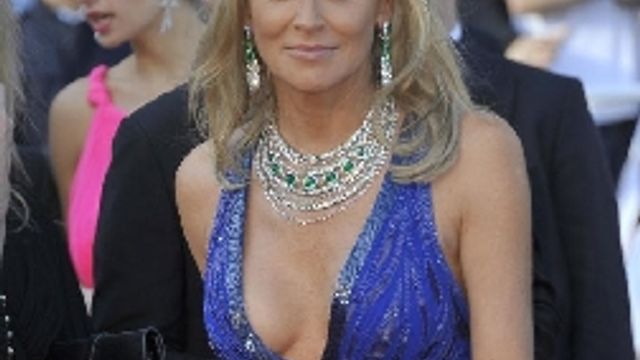 Scollatura mozzafiato e sorriso smagliante. Sul red carpet di Cannes la super star Sharon Stone ha catalizzato l'attenzione dei fotografi arrivando al Palais des Festivals, dove ieri sera si è tenuta la première di "Behind the Candelabra", fasciata in un long-dress blu elettrico coperto di strass. Ad impreziosire il look della diva un luminoso collier, tempestato di smeraldi e diamanti.