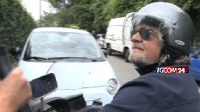 "Sono le 13.30, l’attesa mia e del cameraman fuori dal cancello della villa di Beppe Grillo viene premiata. Dalla stradina che si inerpica dal mare a S. Ilario, Genova, eccolo in sella al suo scooter. Abbronzato, occhiali scuri, casco non integrale. Non è certo l’uomo mascherato della spiaggia di qualche mese fa.