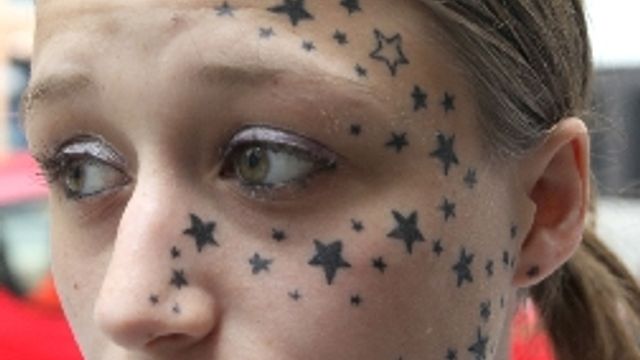 Da 3 a 56 stelline - Quella mattina di giugno 2009, sull'onda dell'entusiasmo si era voluta fare un tatuaggio sul volto. Dovevano ufficialmente essere 3 stelline, ma all'uscita del negozio di tattoo di Courtrai, cittadina belga di frontiera con la Francia, ne aveva un'intera costellazione: 56, tutte blu. Uno shock da cui non si è più ripresa, che le ha provocato depressione, problemi personali, giornate di isolamento e solitudine in casa senza più il coraggio di uscire. Sul web e sui social network come Facebook, in sole 48 ore erano nati gruppi di fan e denigratori.