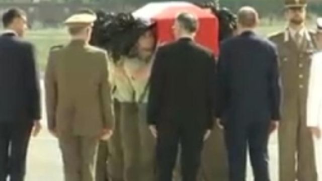Il C130 con a bordo la salma del capitano Giuseppe La Rosa, 53esima vittima italiana dall'inizio della missione in Afghanistan, è atterrato alle 9.35 all'aeroporto militare romano di Ciampino. Ad accogliere i resti del soldato, il presidente del Consiglio, Enrico Letta, il ministro della Difesa, Mario Mauro, i sottosegretari Roberta Pinotti e Gioacchino Alfano e i vertici militari.
