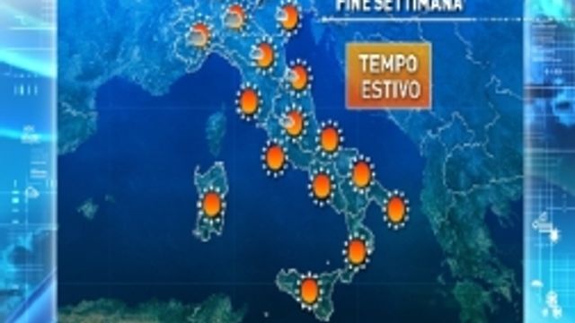 Fino a domenica prevalenza di bel tempo e caldo tipico di inizio estate grazie alla presenza sull'Italia dell’Anticiclone delle Azzorre; qualche nuvola in più al Nord, con temporali sulle Alpi, solo nella giornata di domani a causa di una perturbazione atlantica. Poi nel fine settimana l'Anticiclone delle Azzorre lascerà il posto all'Anticiclone Africano, accompagnato da aria di origine sahariana: tra lunedì e mercoledì quindi caldo e afa in aumento.