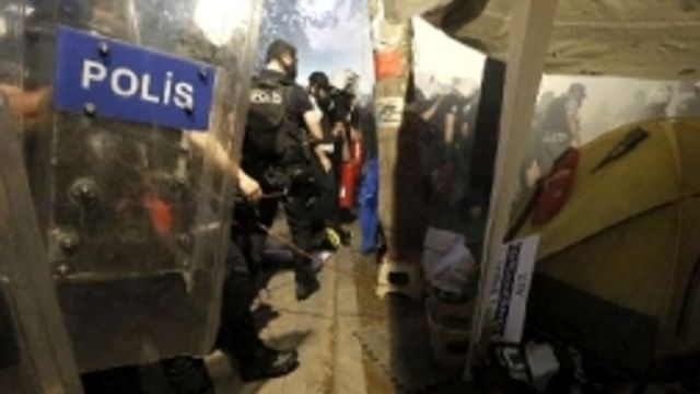 Le minacce del premier Erdogan diventano realtà. La polizia turca è infatti intervenuta su Taksim a Istanbul con cannoni ad acqua e gas lacrimogeni contro diverse centinaia di persone riunite sulla piazza per solidarietà con gli occupanti di Gezi Park. Poche ore prima Erdogan aveva lanciato un vero e proprio ultimatum ai "Ribelli": basta proteste o torneranno ad agire i poliziotti.