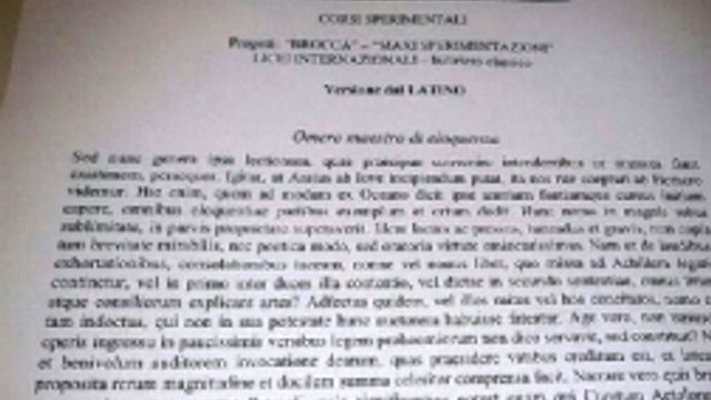 Al liceo classico l'autore scelto per la versione di latino è stato Quintiliano: ai maturandi è stato proposto il brano "Omero maestro di eloquenza" tratto dal libro X delle Istitutiones.
