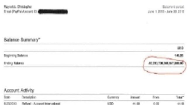 E' la storia di cui tutti vorremmo essere protagonisti. Svegliarsi una mattina come le altre e, guardando le proprie mail, notare che Paypal ha scritto per informare di un accredito. Incuriositi dal messaggio, non avendo movimenti in sospeso, aprirlo e scoprire di avere sul proprio conto 92 quadrilioni di dollari. Vedendo il lunghissimo numero, Chris Reynolds deve aver rovesciato il proprio caffè.