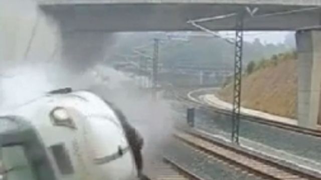Il freno fu azionato una manciata di secondi prima dell'impatto, troppo pochi per ridurre la velocità e portarla a livelli di sicurezza. Nella curva "A Gradeira" di Arois, luogo dell'incidente, il limite è di 80 km/h, ma alcuni tecnici interpellati dai media nei giorni successivi al deragliamento hanno sostenuto che è strutturata in modo da garantire la stabilità del treno fino al 50 per cento oltre il limite, quindi fino a un massimo di 120 chilometri orari. Il treno, invece, pur in frenata, è arrivato a 152 chilometri l'ora.