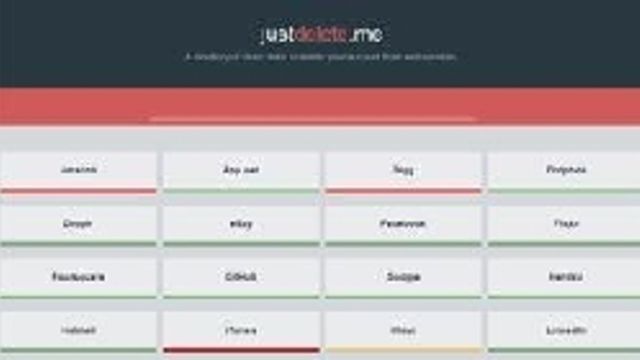 JustDelete.me è un aggregatore di link di circa trenta piattaforme web, da Facebook a Skype, da iTunes a eBay, che aiutano a cancellarsi dai relativi servizi. Un'idea non proprio nuova - ci sono già dei siti simili come deleteyouraccount.com e accountkiller.com - ma più completa e facilmente fruibile. In homepage non solo ci sono sono tutte le icone dei servizi a cui ci si può potenzialmente cancellare (e relativi link per farlo praticamente), ma anche delle brevi note su come farlo. Inoltre, tutte le icone sono contrassegnate da alcuni colori (verde, giallo, rosso e nero) a seconda della facilità o meno di poter annullare l'iscrizione. Tra quelli più facili da cui cancellarsi, cerchiati in verde, ci sono Twitter, Facebook, LinkedIn, Google, eBay e Hotmail; nella black-list invece ci sono Wordpress, popolare piattaforma per creare un sito, e Netflix, servizio di streaming di film e show tv molto diffuso negli Stati Uniti. Nella zona 'rossa' ci sono invece Amazon, iTunes ma anche il New York Times e Skype.