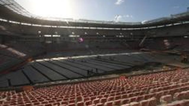 Pet e pula di riso - I progettisti hanno ideato una struttura a cielo aperto sospesa da due gru di 200 tonnellate, senza utilizzare alcuna trave in acciaio o calcestruzzo. Per assicurare la giusta resistenza, lo stadio in plastica riciclata combina speciali mattoni in poliuretano termoplastico, polietilene tereftalato e pula di riso riciclata. Altro punto di forza è l'uso di pannelli solari, per sfruttare l'energia naturale del sole.