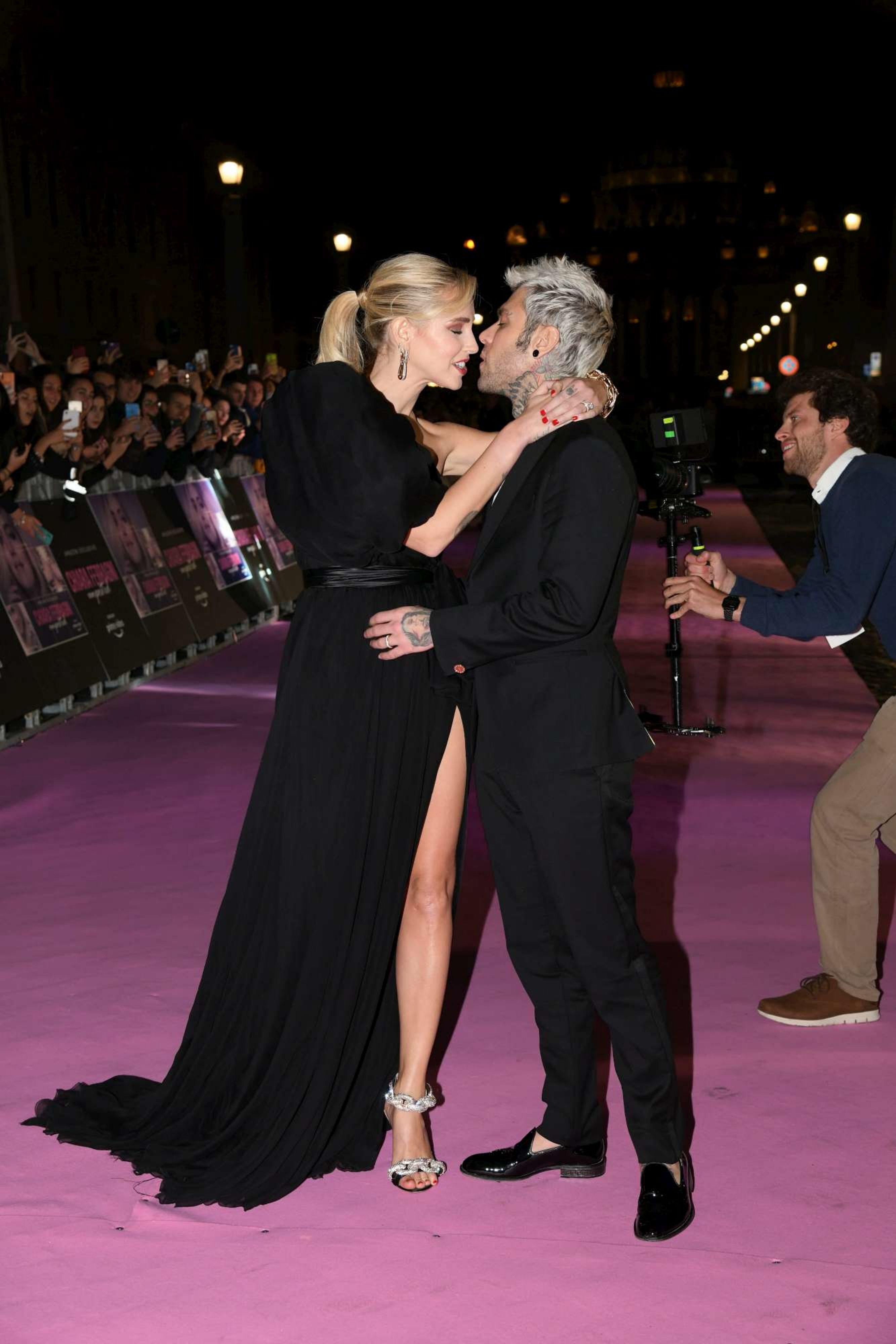 L'influencer si presenta raggiante alla proiezione-evento del documentario sulla sua vita firmato da Elisa Amoruso, che traccia un ritratto della più potente fashion influencer del mondo e imprenditrice digitale. In un elegante vestito lungo nero monospalla e con spacco vertiginoso, Chiara Ferragni ha percorso parte del pink carpet per mano a Fedez, anche lui elegante in completo nero e camicia bianca.