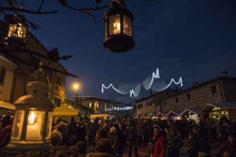 Chi desidera fare shopping trova oltre settanta casette in legno con un’accurata selezione di oggetti d’artigianato, articoli da regalo e candele d’ogni forma, colore, profumo e foggia, mentre chi vuole soddisfare l’appetito trova una grande struttura riscaldata, con i piatti della tradizione locale. Per conoscere invece il territorio senza uscire dallo spirito natalizio si può approfittare del trenino che segue un mini percorso di visite guidate, a cominciare dalla suggestiva Pieve del XII secolo. Si fa tappa poi alla cinquecentesca Villa Berloni e al Museo PAC dell’arte tessile e del ricamo.