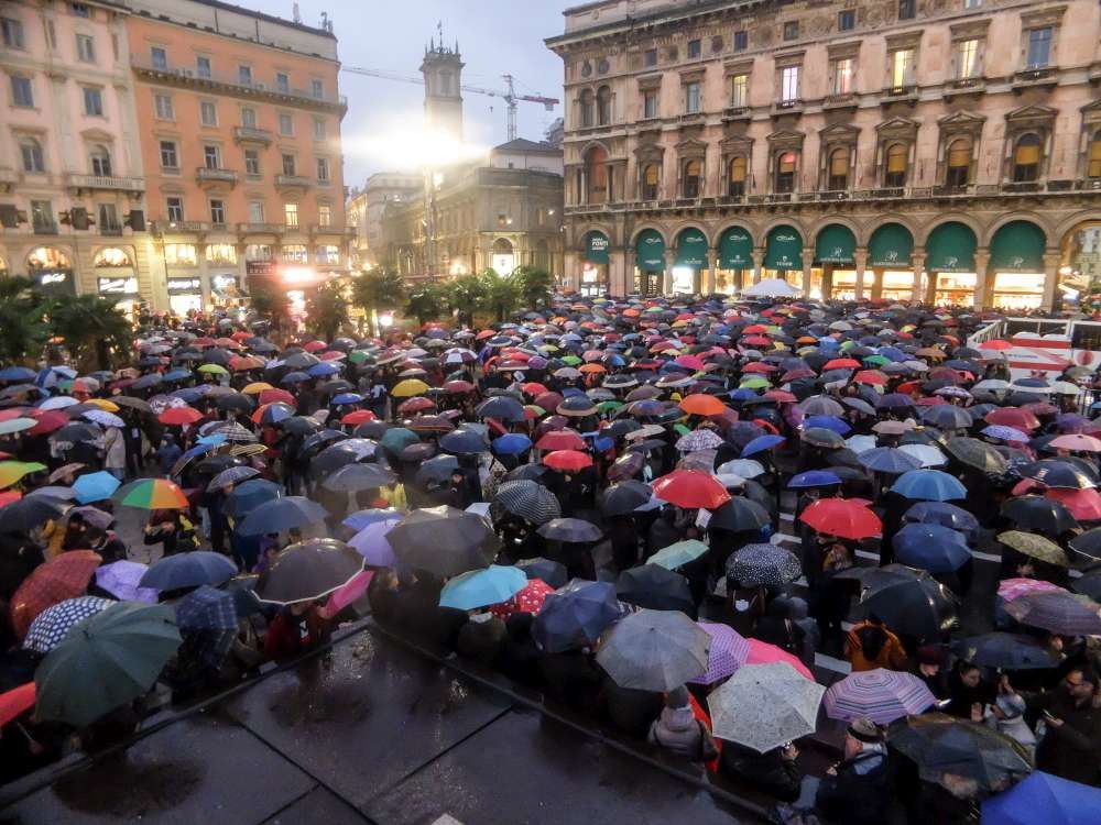 A Milano la pioggia non ha fermato le "Sardine". Piazza del Duomo è stata infatti riempita da 25mila manifestanti che hanno deciso di prendere parte all'iniziativa, per la prima volta organizzata nel capoluogo lombardo. Sul palco, oltre a momenti di musica, si sono alternati attori che hanno recitato alcuni articoli della Costituzione. La folla ha quindi scandito lo slogan: "Milano non si lega".