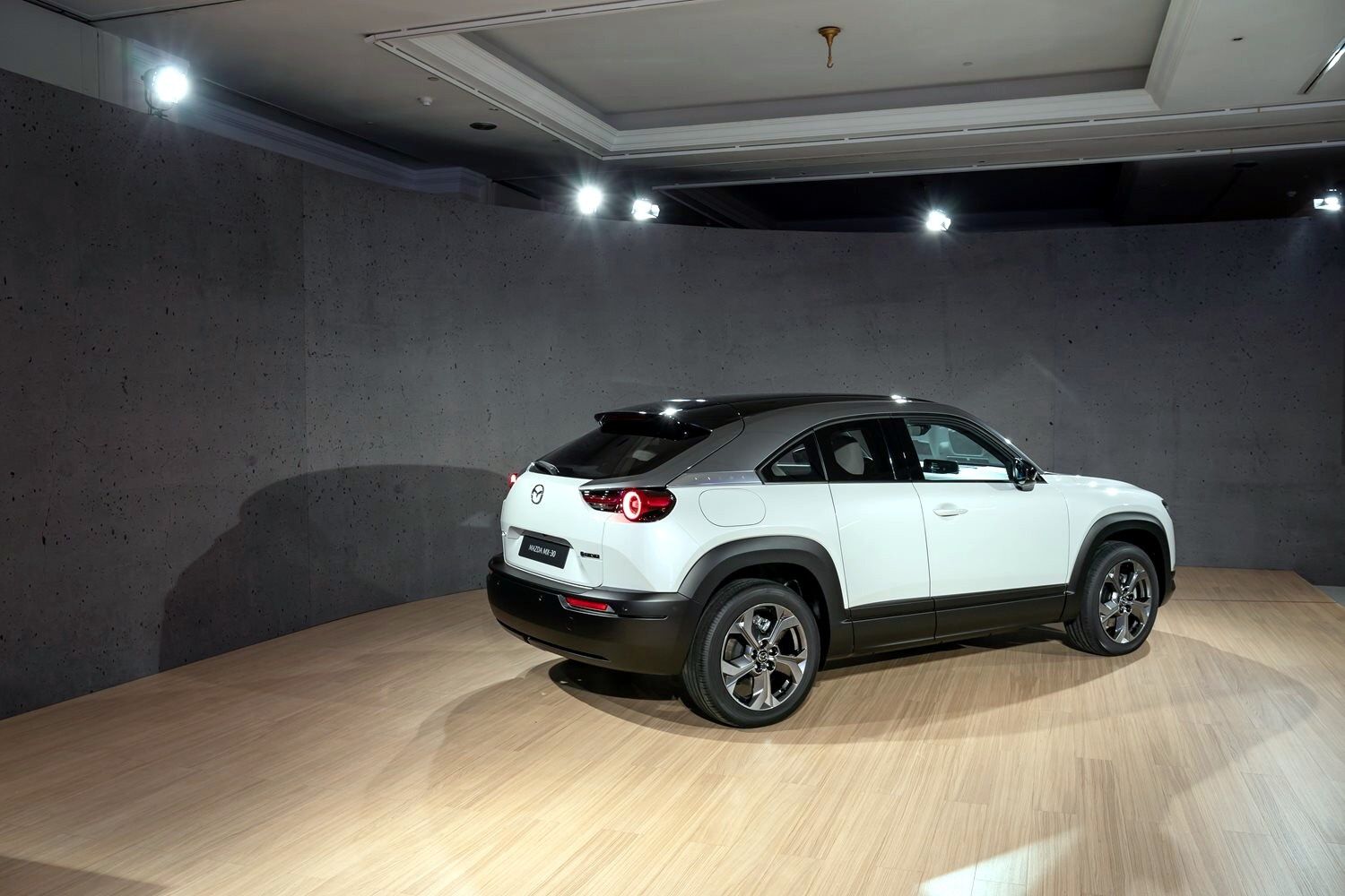 La filosofia estetica del crossover MX-30 insegue un cavallo di battaglia storico di Mazda: le portiere senza montante, che ricordano un poʼ le originali apertura della sportiva RX-8. Le forme della carrozzeria sono chiaramente diverse, citano piuttosto i Suv moderni del brand giapponese, come il CX-30 introdotto di recente sul mercato italiano. Attive sul look di Mazda MX-30 sono anche le tecnologie avanzate di sicurezza i-Activsense, perché grazie alla nuova e robusta scocca si assorbono in modo più efficace le energie da impatto.