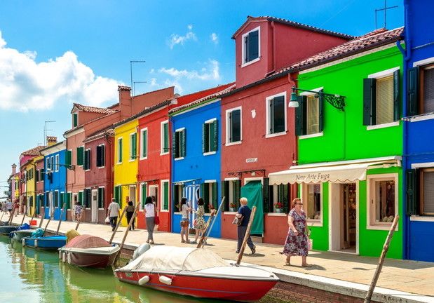 BURANO, VENEZIA -Secondo la leggenda, i colori vivaci con i quali sono dipinte le facciate sono stati scelti per permettere ai pescatori, un tempo come ai giorni nostri, di riconoscere la propria abitazione da lontano, al rientro dalla pesca, anche se la laguna è ammantata di nebbia. Il risultato è un borgo variopinto e oltremodo affascinante.