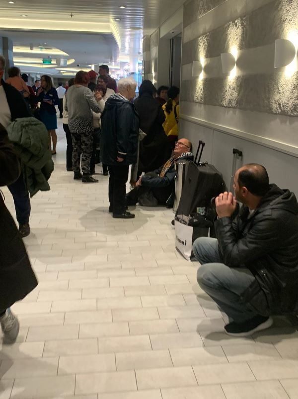 Le testimonianze sui social Nel frattempo alcuni turisti a bordo della nave iniziano a postare testimonianze sui social: persone sfiancate e sedute un po' ovunque, che affollano con i propri bagagli i corridoi della nave, e foto delle forze dell'ordine sulla banchina del porto scattate dall'alto. "Siamo bloccati in nave senza sapere il motivo (ufficialmente)", ha scritto qualcuno.