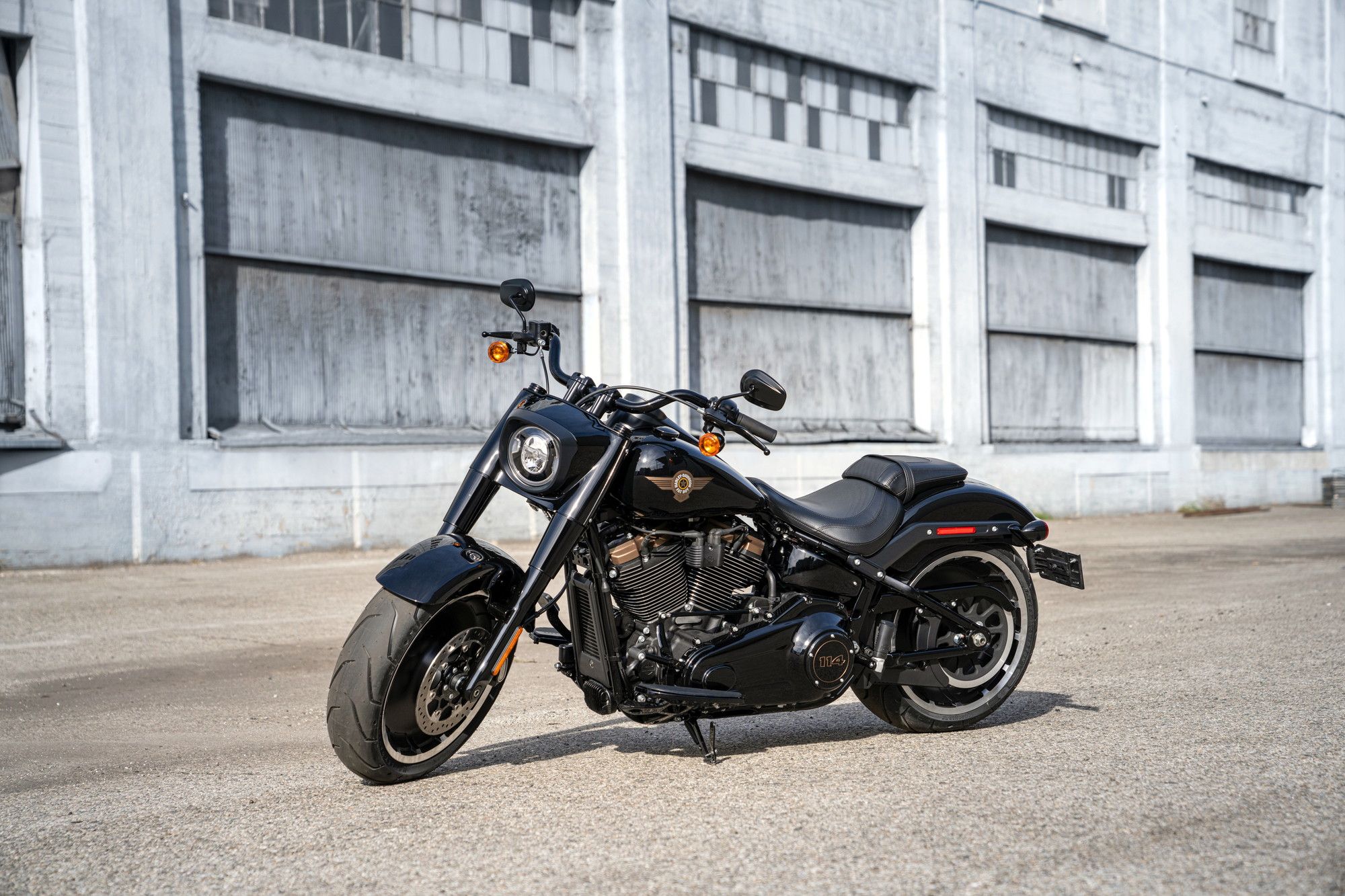 Per celebrare il trentennale di una moto entrata di diritto tra le più importanti della Casa di Milwaukee, arriva la Fat Boy 30th Anniversary. Si tratta chiaramente di una Limited Edition, che sarà prodotta in soli 2.500 esemplari, tutti numerati. Si caratterizza per le finiture scure con eleganti riflessi bronzei, i cerchi in alluminio pressofuso con finiture in nero satinato. Unʼopzione possibile è il monocolore Vivid Black, per un look “tutto nero” che si fa forte anche dei terminali di scarico in Black Onyx, un trattamento di verniciatura a vapore molto resistente e che in piena luce rivela il cromo sottostante. Un nuovo disegno del faro anteriore accoglie le luci a LED.
