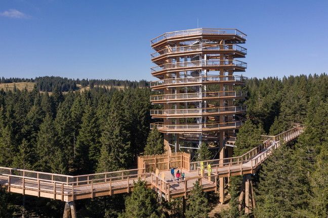 Un'incredibile torre di 45 metri che si erge in mezzo alla foresta in Danimarca,simile a quella realizzata in Slovenia, mix di avventure e percorsi didattici. La pista sopraelevata delle Fiandre e i semplici e meravigliosi boschi di abeti giganti nella nostra Mezzano di Primiero.