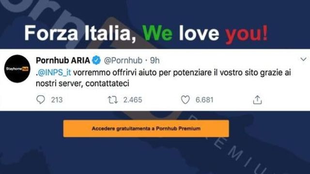 Sono oltre 1,5 milioni le domande inoltrate al portale dell'Inps per richiedere il bonus previsto dal decreto sull'emergenza coronavirus. Un numero di domande enorme, che ha fatto crollare il sito nel giorno in cui si dovevano recepire le prima richieste. I social, come sempre, non si sono risparmiati dopo l’epic fail del portale della previdenza sociale italiana, ma questa volta l'iniziativa più simpatica è arrivata dal famoso sito pornografico PornHub, che con il proprio account twitter ha rivolto una proposta (provocatoria) all'Inps: “Vorremmo offrirvi aiuto per potenziare il vostro sito grazie ai nostri server, contattateci”.