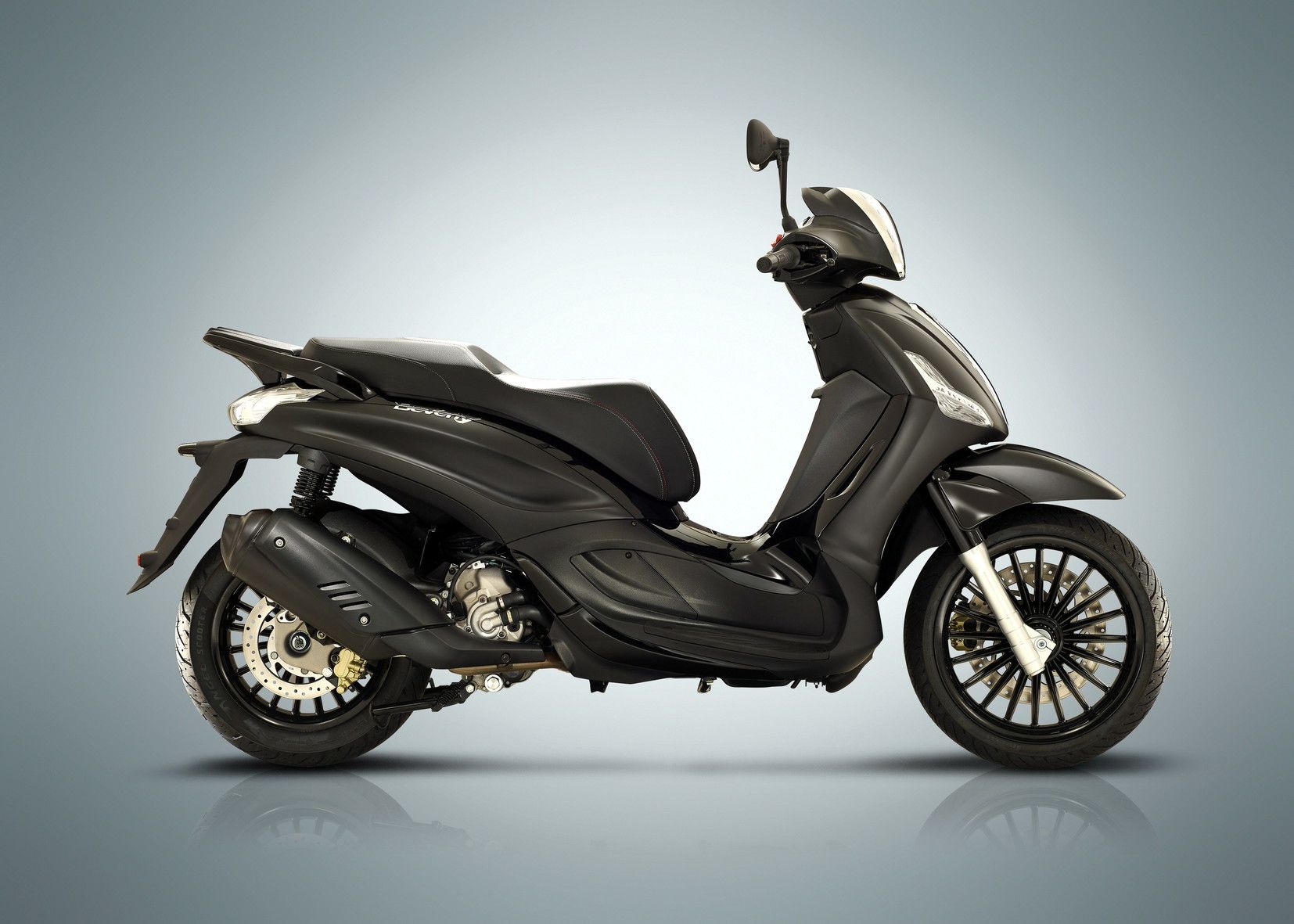 Tutte hanno di serie lʼABS e il controllo di trazione ASR, disattivabile volendo. Ma di serie è anche il telecomando per l’apertura della sella a distanza, con quella funzione “bike finder” che permette di ritrovarla a distanza dal lampeggio dei fari. Uno scooter a ruote alte di fascia alta ma anche molto pratico, con la presa Usb alloggiata nel controscudo e la strumentazione con display LCD integrato. La versione Beverly 350 Tourer si presenta con il cupolino fumé, il bauletto da 36 litri in tinta e il sistema di connettività via Bluetooth “Piaggio Mia”.