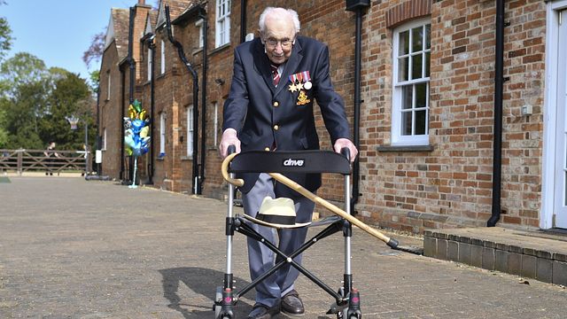 Mentre sta per compiere 100 anni (il 30 aprile), il capitano Tom Moore è senza dubbio il personaggio del momento. L’ex militare ha promesso 100 giri del suo giardino (con il suo deambulatore) entro il suo compleanno a beneficio della sanità pubblica britannica contro il coronavirus: puntava a circa 1000 euro, ha raccolto 32 milioni di euro. Non è finita qui. Sempre a scopo benefico ha cantato la cover dell’inno del Liverpool "You’ll never walk alone", insieme a Michael Ball e al coro NHS Voices of Care conquistando il primo posto della hit parade britannica dei singoli.