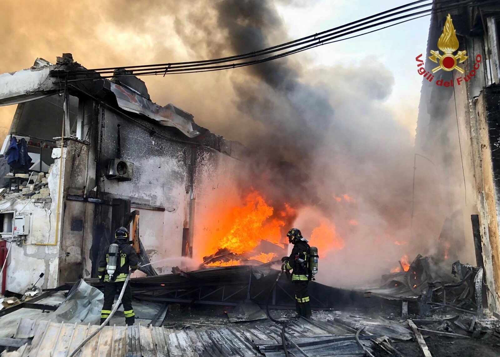 La fabbrica aveva riaperto lunedì, per effetto dell'ultimo decreto governativo. Secondo alcuni testimoni lo scenario che si è presentato è stato apocalittico e alcuni dipendenti, usciti indenni dalla fabbrica, ipotizzano che a esplodere sia stata una bombola di gas presente nello stabilimento per le lavorazioni. Il dipendente ferito in maniera lieve è stato portato al Cardarelli di Napoli; la persona più grave sembra sia stata portata all'ospedale di Nola. La fabbrica stava effettuando i turni con personale ridotto per il distanziamento nei luoghi di lavoro.
